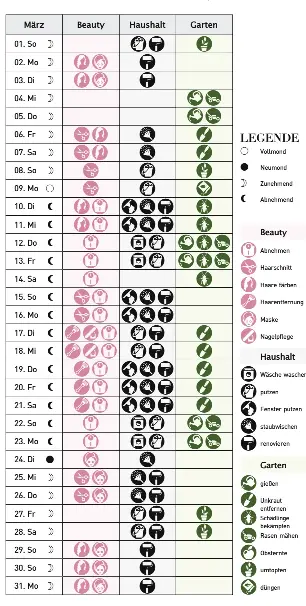 Der tägliche mondkalender erklärt ausführlich, wie uns der mond in haushalt, garten und beruf dass der mond in haushalt, garten und körperpflege ein guter helfer ist, wissen die mondkenner.